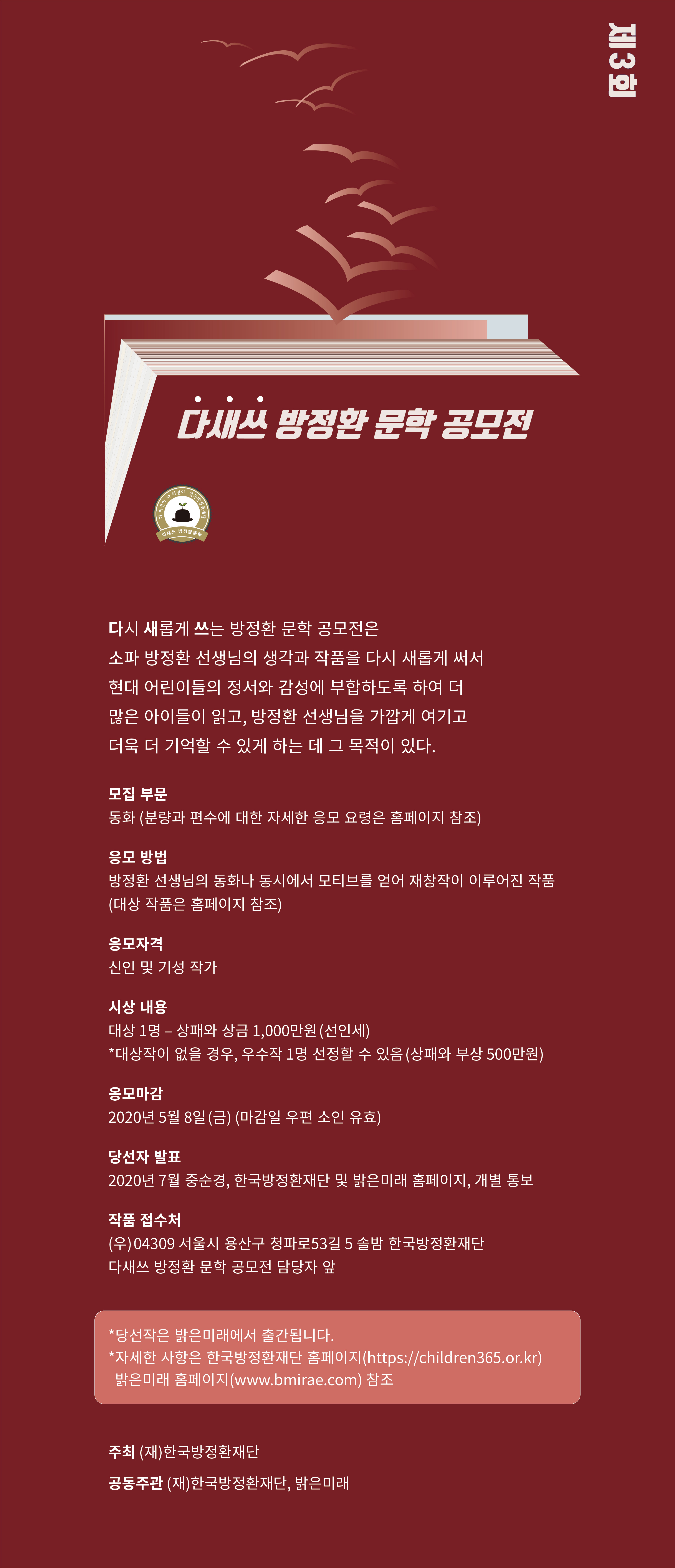 제3회 다새쓰 방정환 문학상 공모전에 많은 관심과 지원 부탁드립니다.