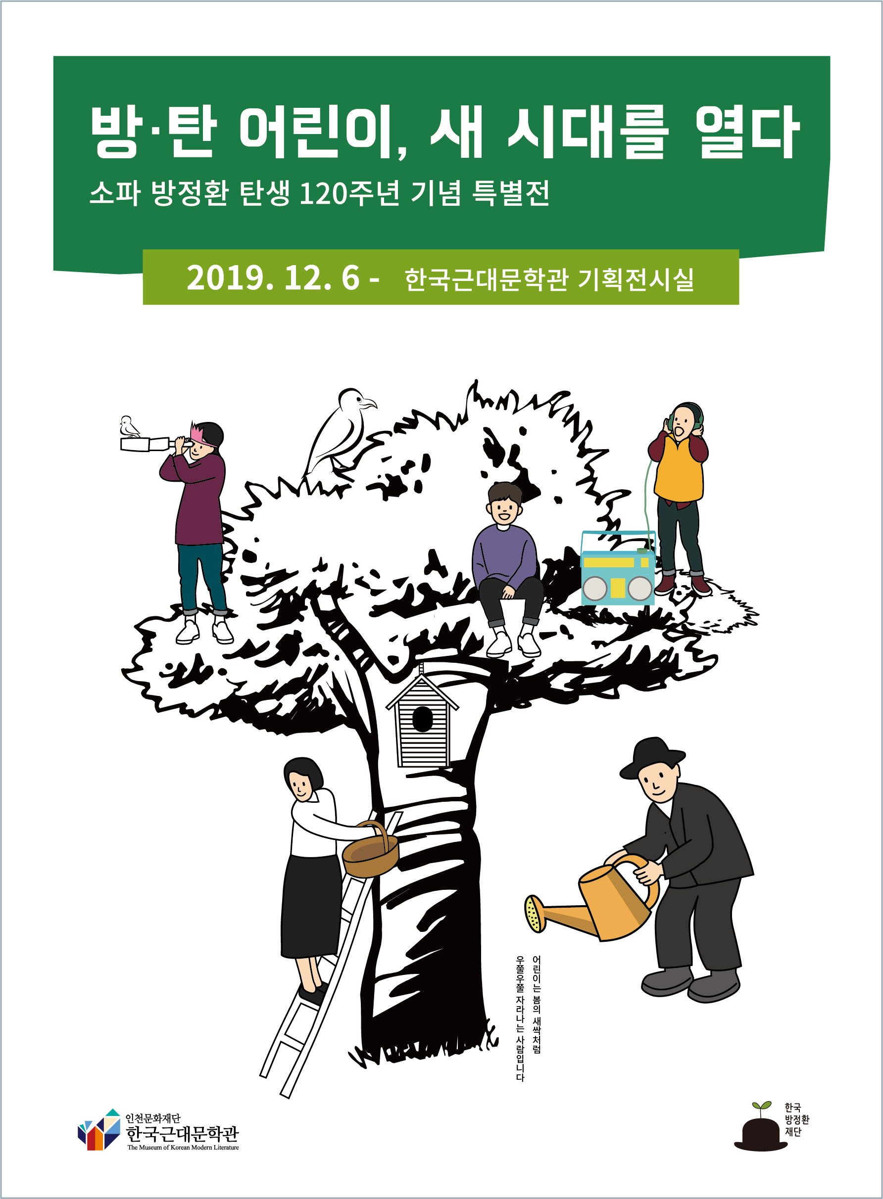 한국방정환재단과 한국근대문학관 공동 주관, 주최로 방정환 탄생 120주년 기념 특별전시회 <방.탄 어린이, 새 시대를 열다>를 엽니다. 가족과 함께 즐길 수 있는 어린이 체험 위주의 전시입니다.
