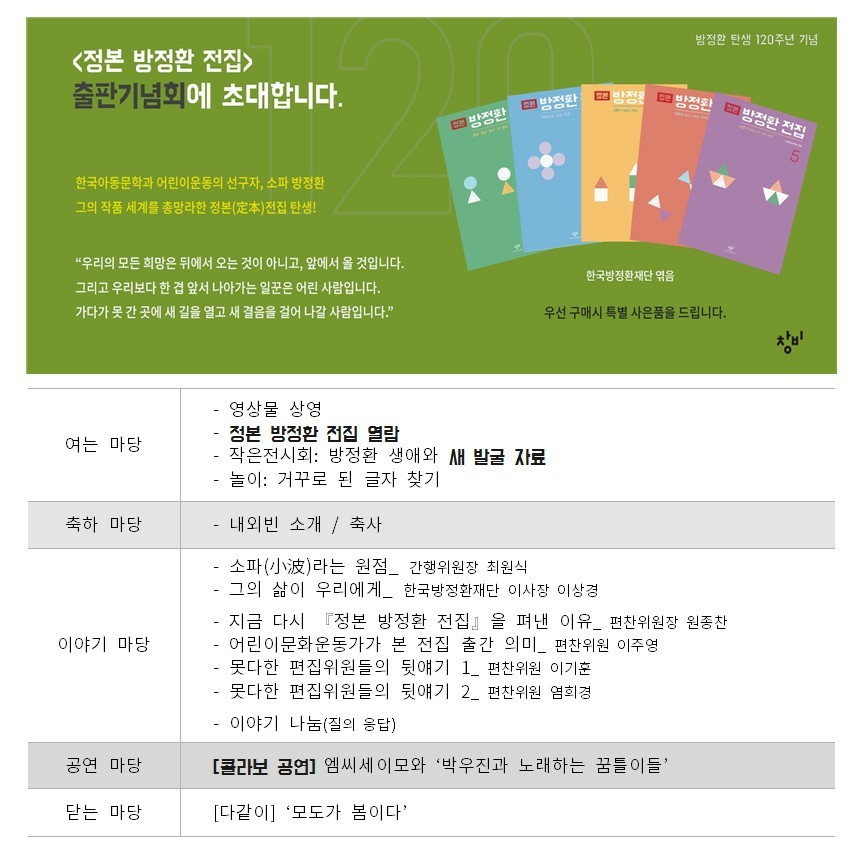 『정본 방정환 전집』 출간기념회에 초대합니다.
