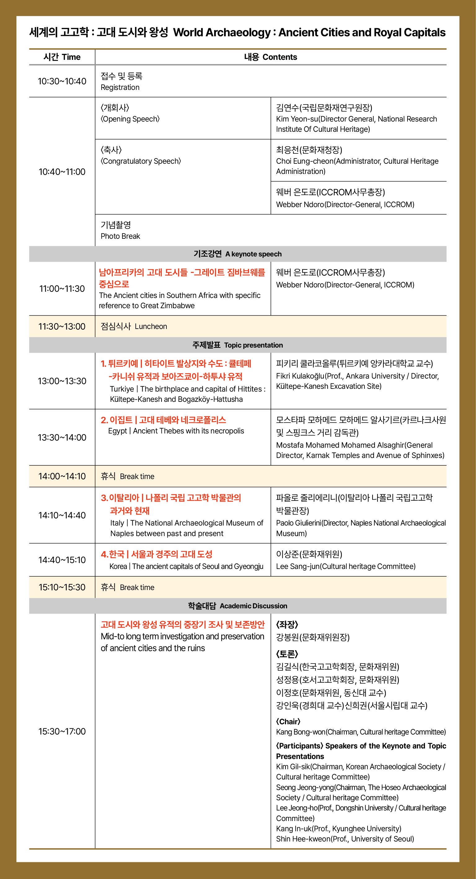 주제 : 세계의 고고학: 고대 도시와 왕성 (World Archaeology : Ancient Cities and Royal Capitals)