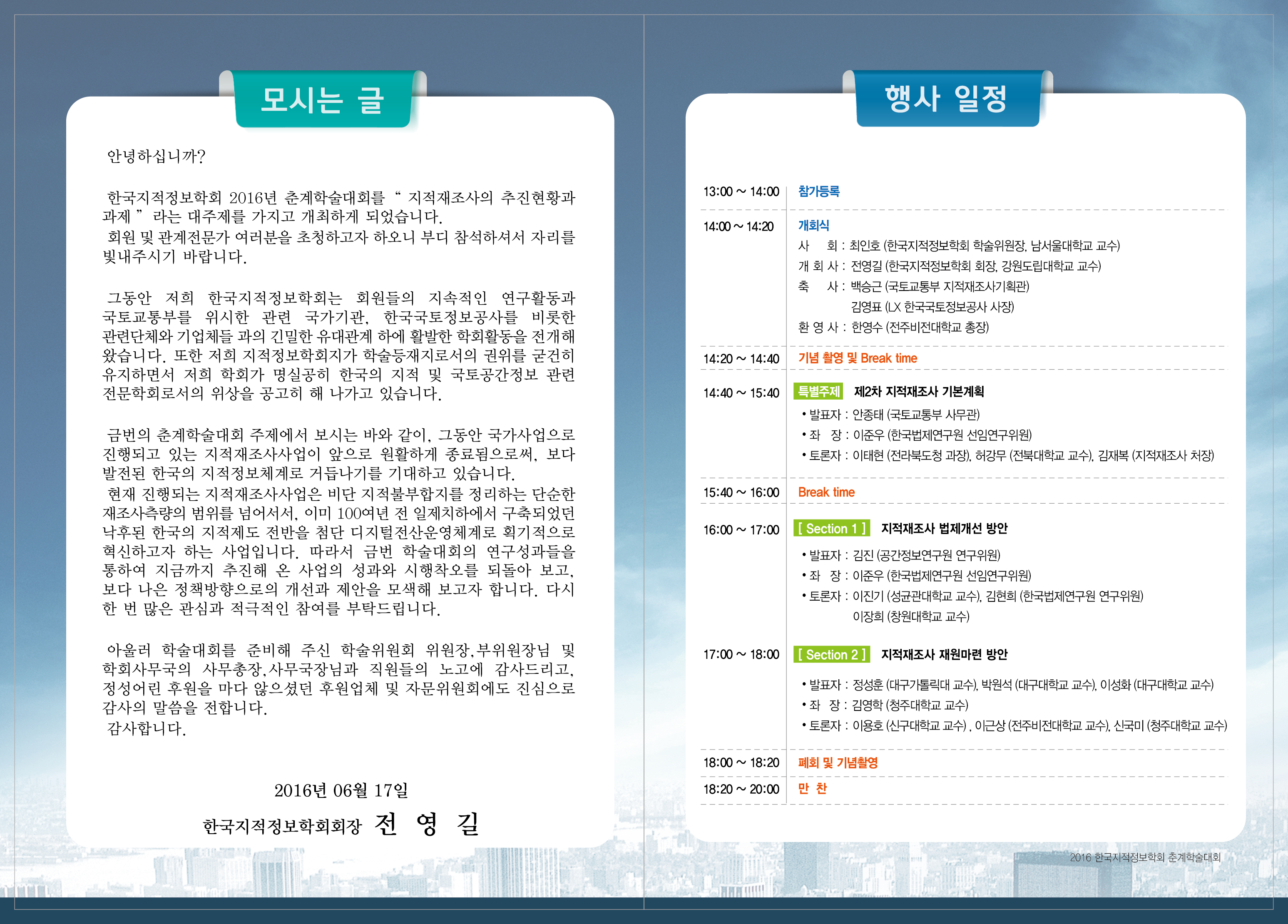 2016년 사단법인 한국지적정보학회 춘계학술대회 개최 안내