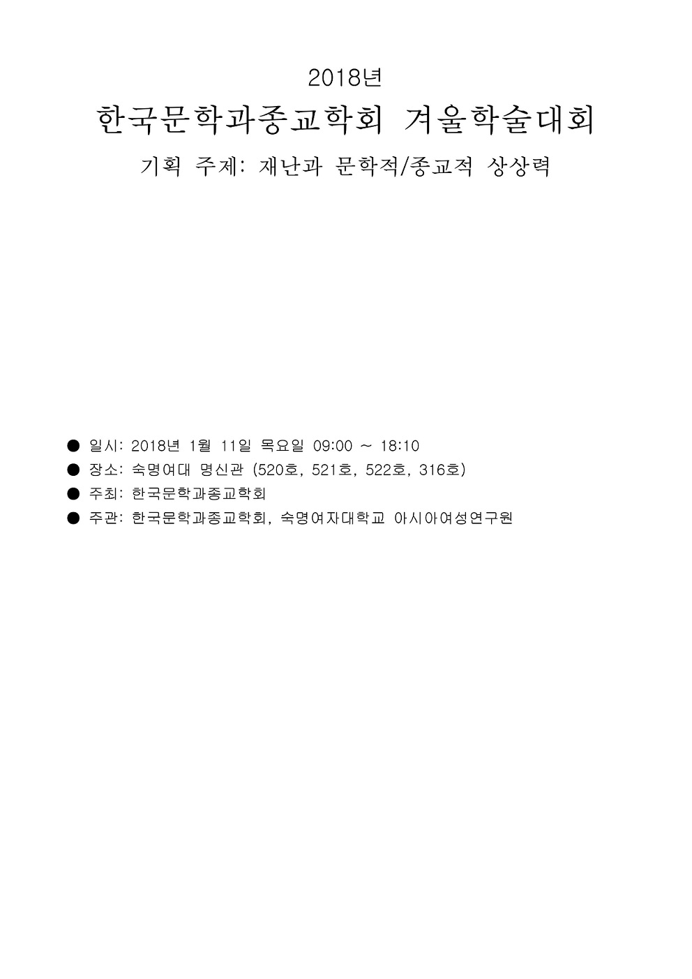 ■ 행사명_ 아시아여성연구원 공동주관 2018년 한국문학과종교학회 겨울학술대회