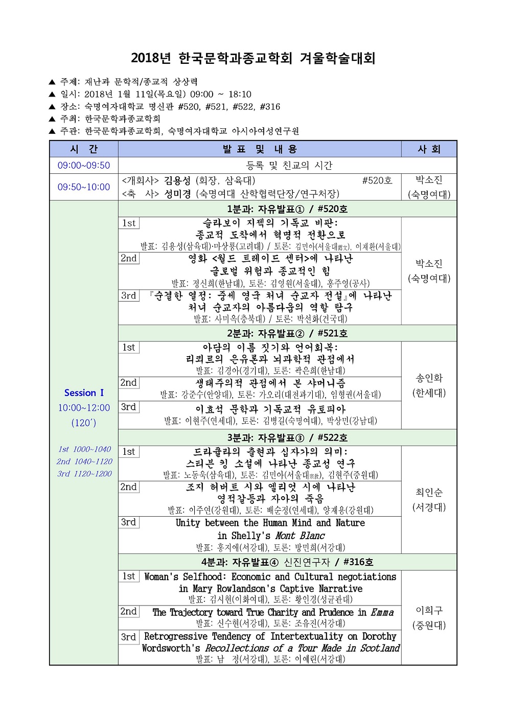 ■ 주 관_ 한국문학과종교학회, 숙명여자대학교 아시아여성연구원