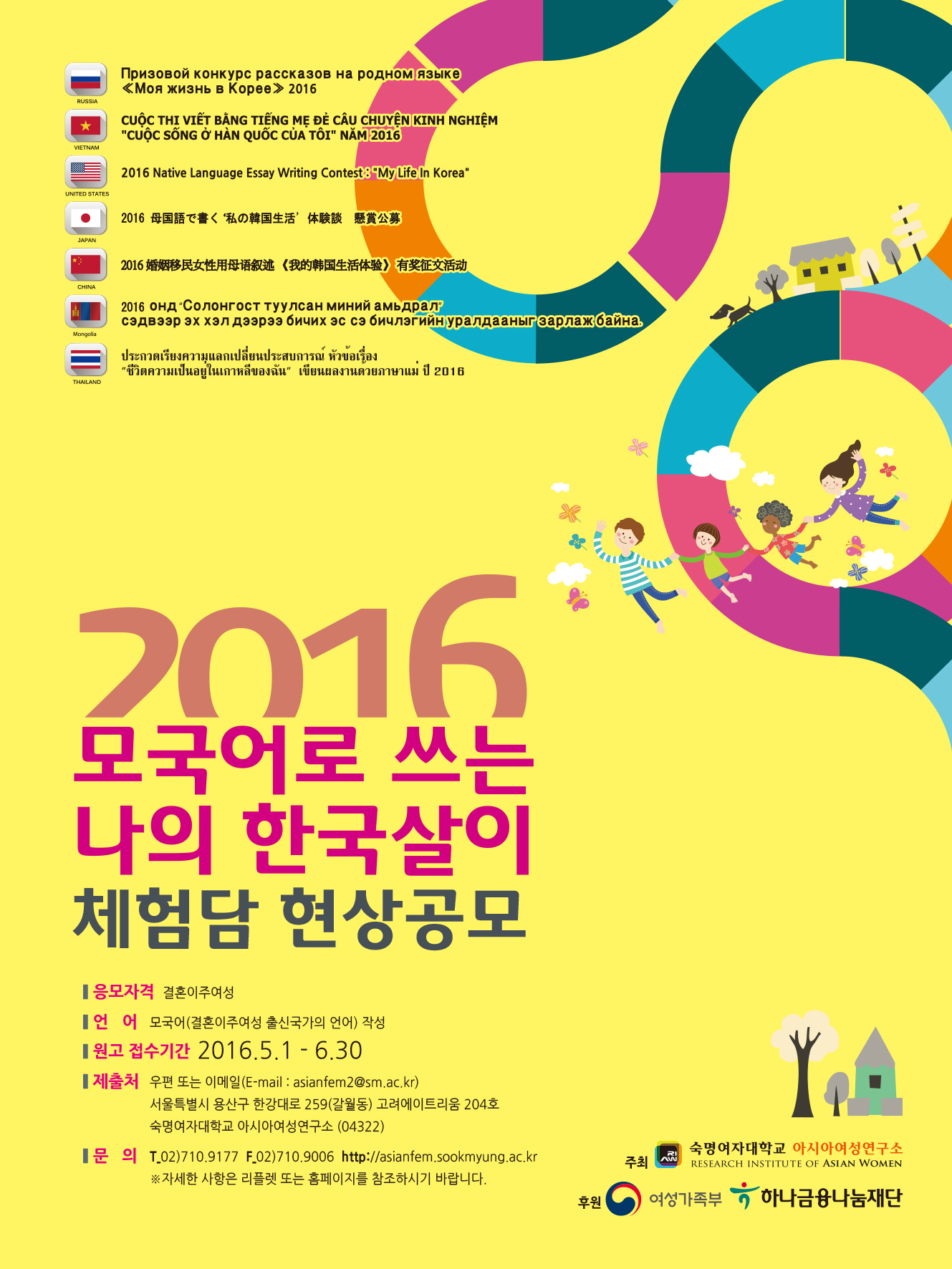 2016 모국어로 쓰는 '나의 한국살이' 체험담 현상공모전을 시행합니다.
