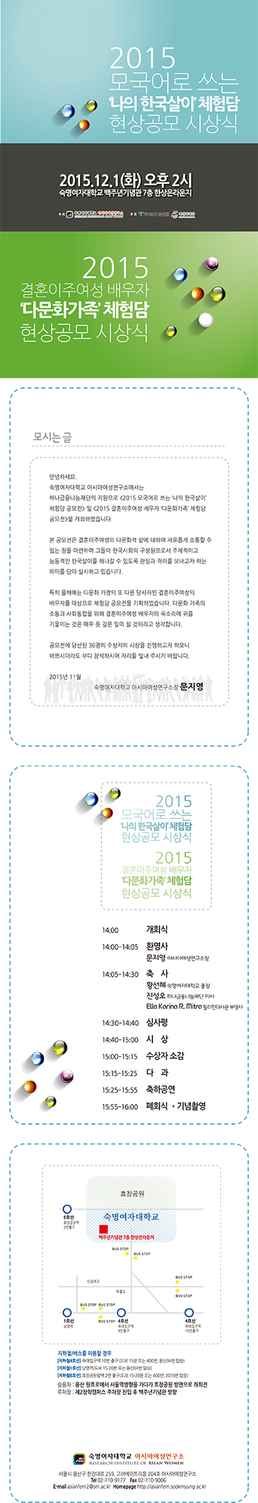 아시아여성연구소에서는 <2015 모국어로 쓰는 나의 한국살이 체험담 현상공모> 및