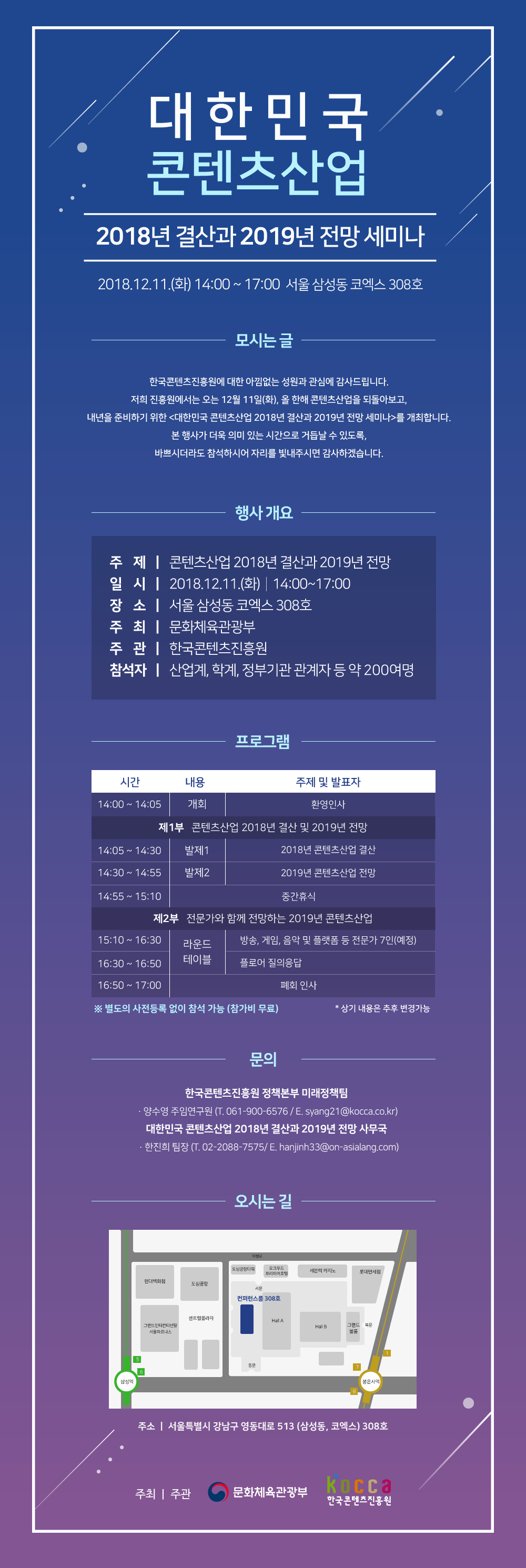 행사명 : 콘텐츠산업 2018년 결산과 2019년 전망