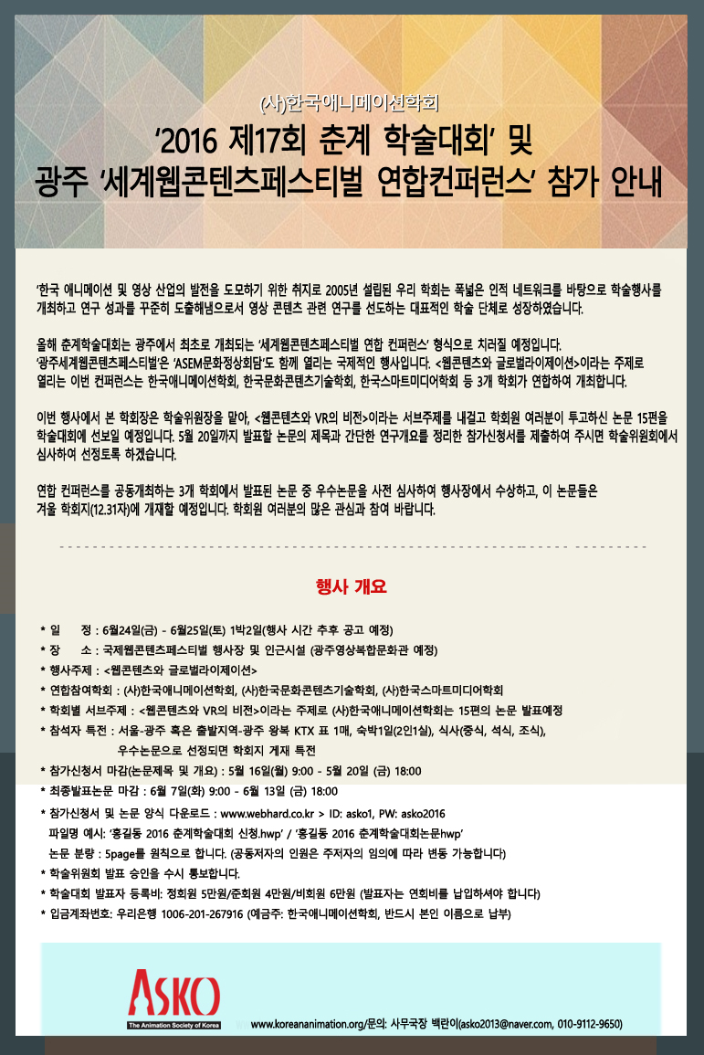 2016 제17회 춘계학술대회 안내