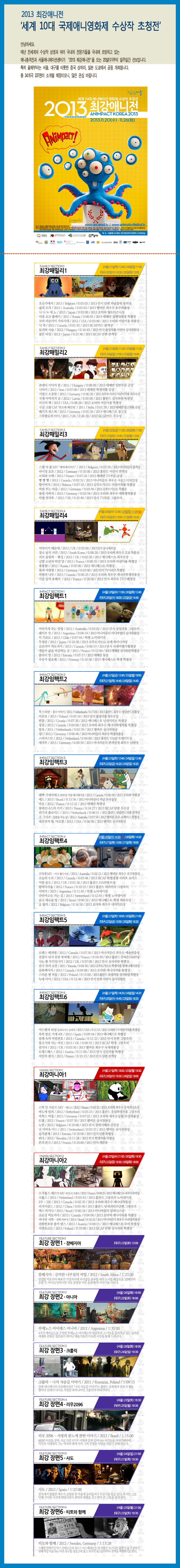 2013 최강애니전 '세계 10대 국제애니영화제 수상작 초청전' 안내입니다.