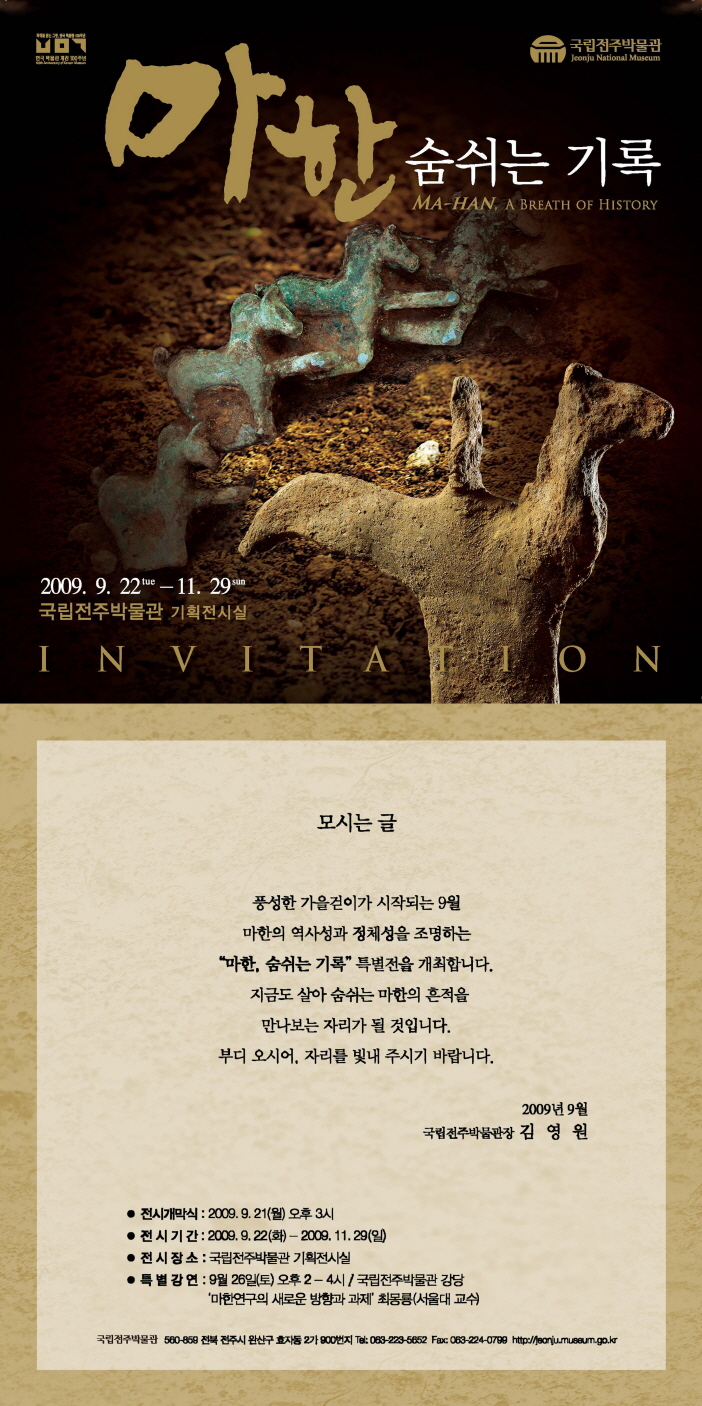‘마한, 숨쉬는 기록’ 전시 개최를 알립니다.