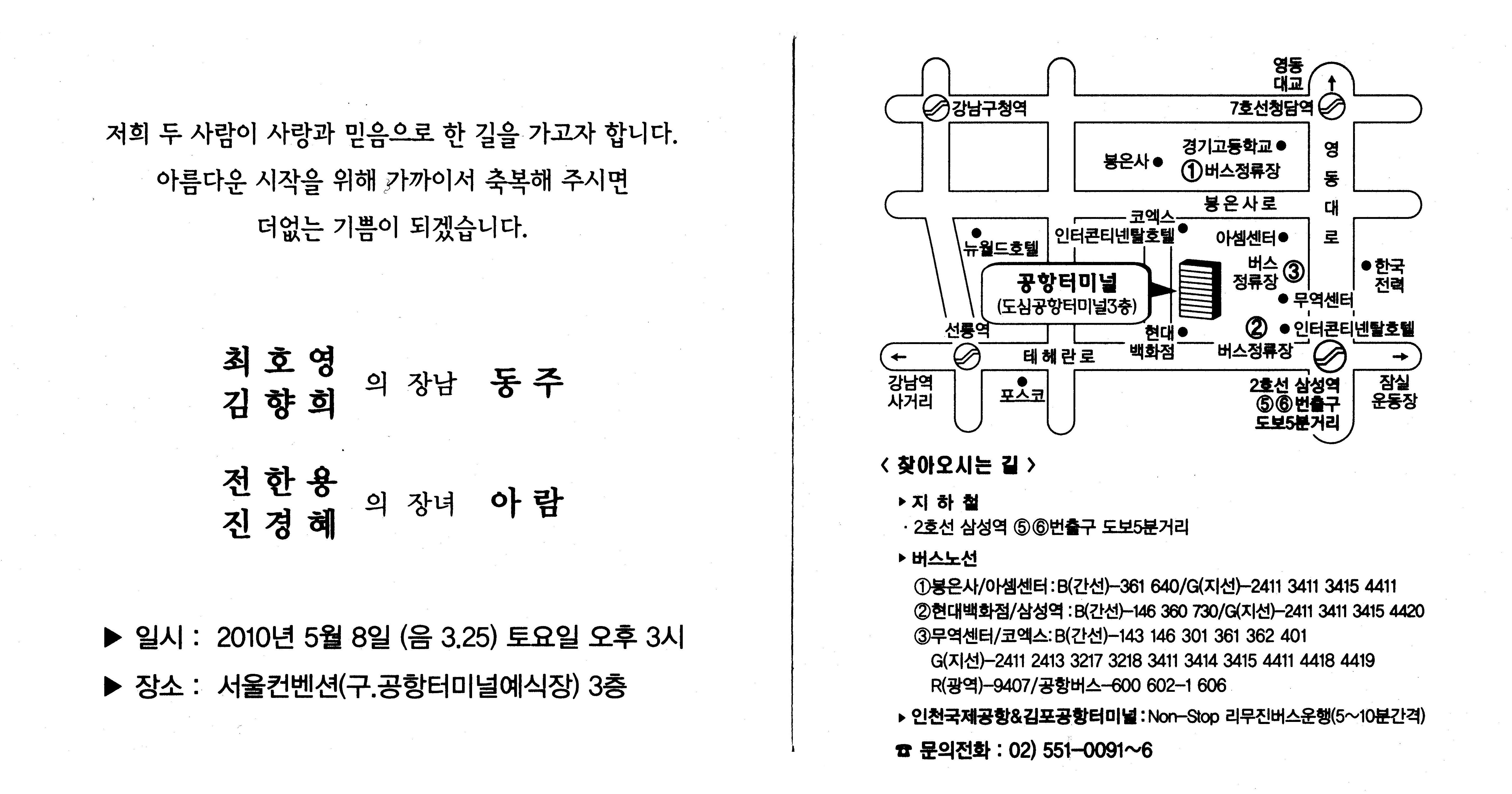 * 장소 : 서울컨벤션(구.공항터미널예식장(삼성동)) 3층