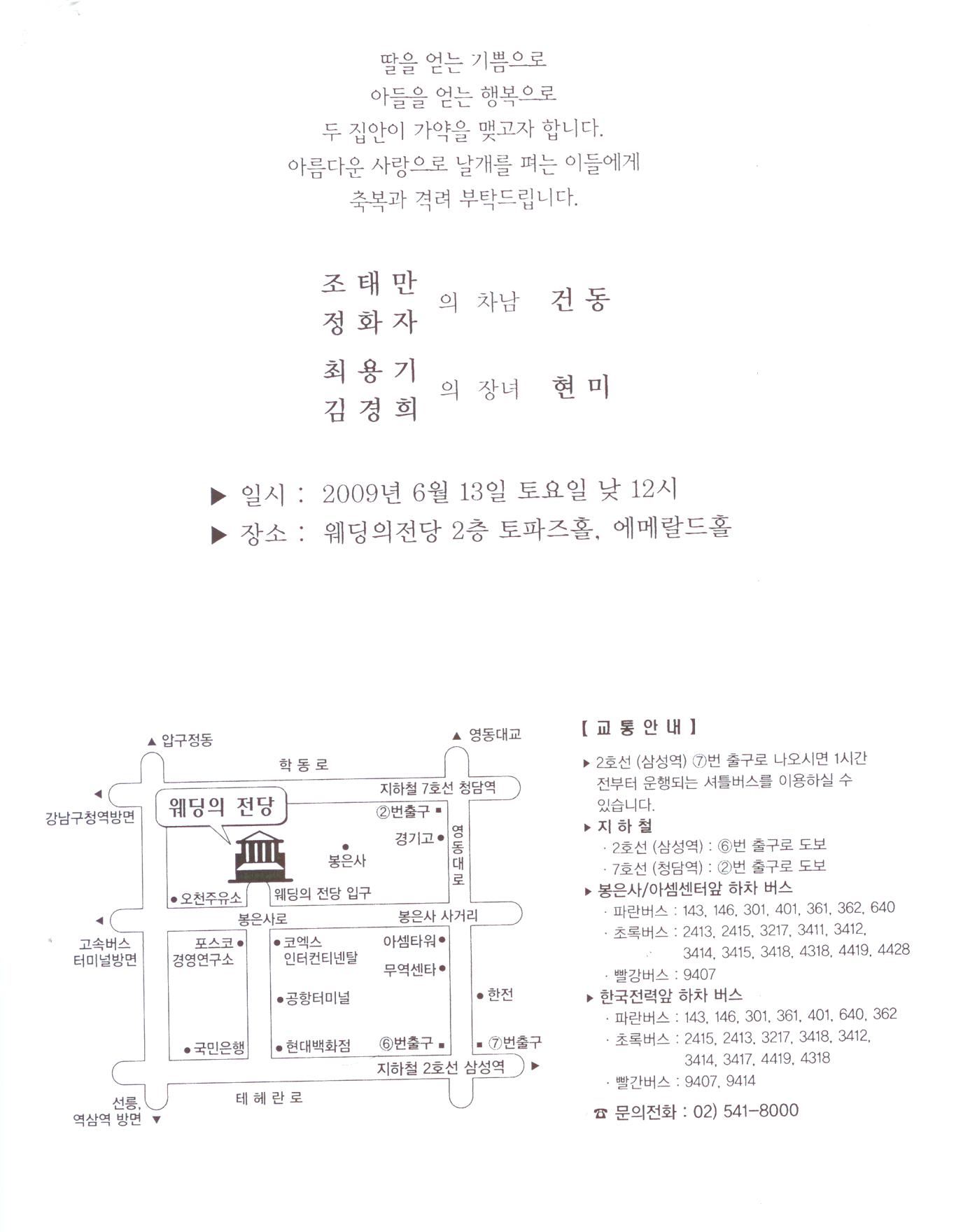 장 소 : 웨딩의 전당 2층 토파즈홀, 에메랄드홀