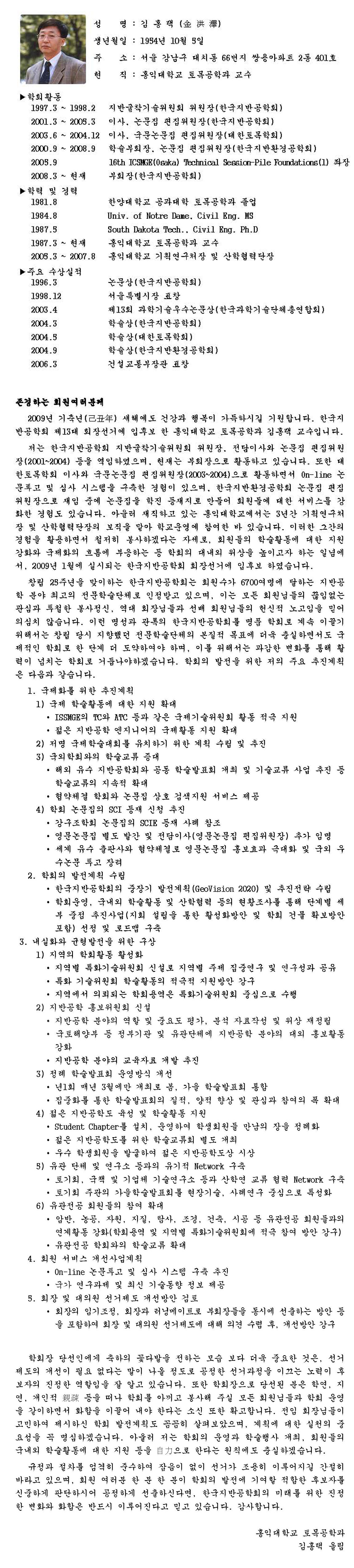 회장입후보자 - 김홍택 교수