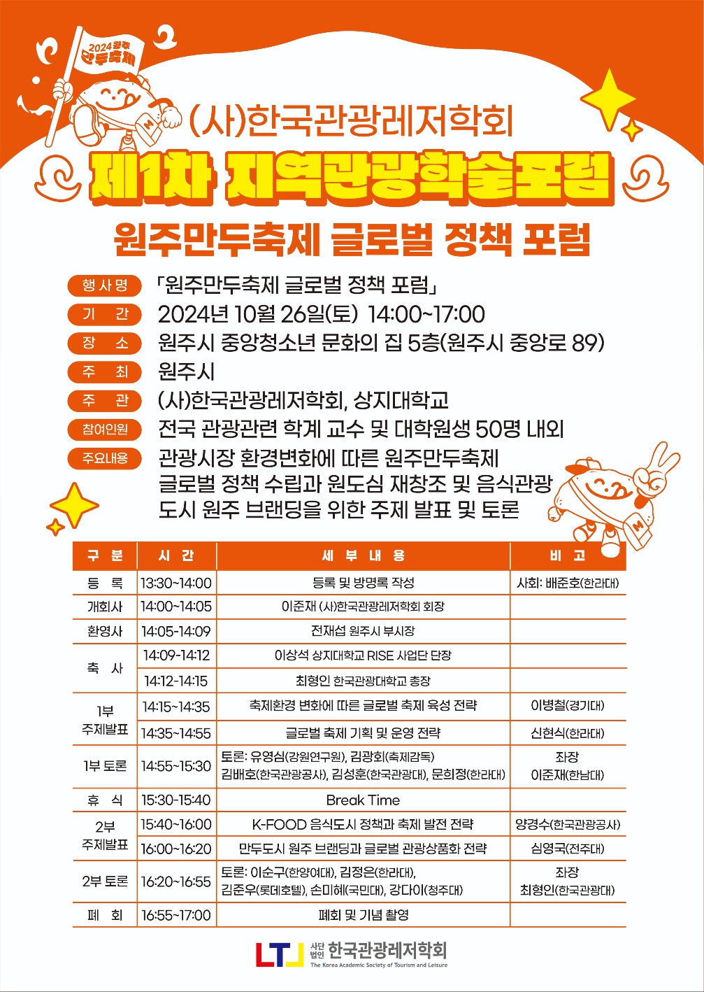 사)한국관광레저학회 『2024 제1차 지역관광학술포럼』 개최 안내