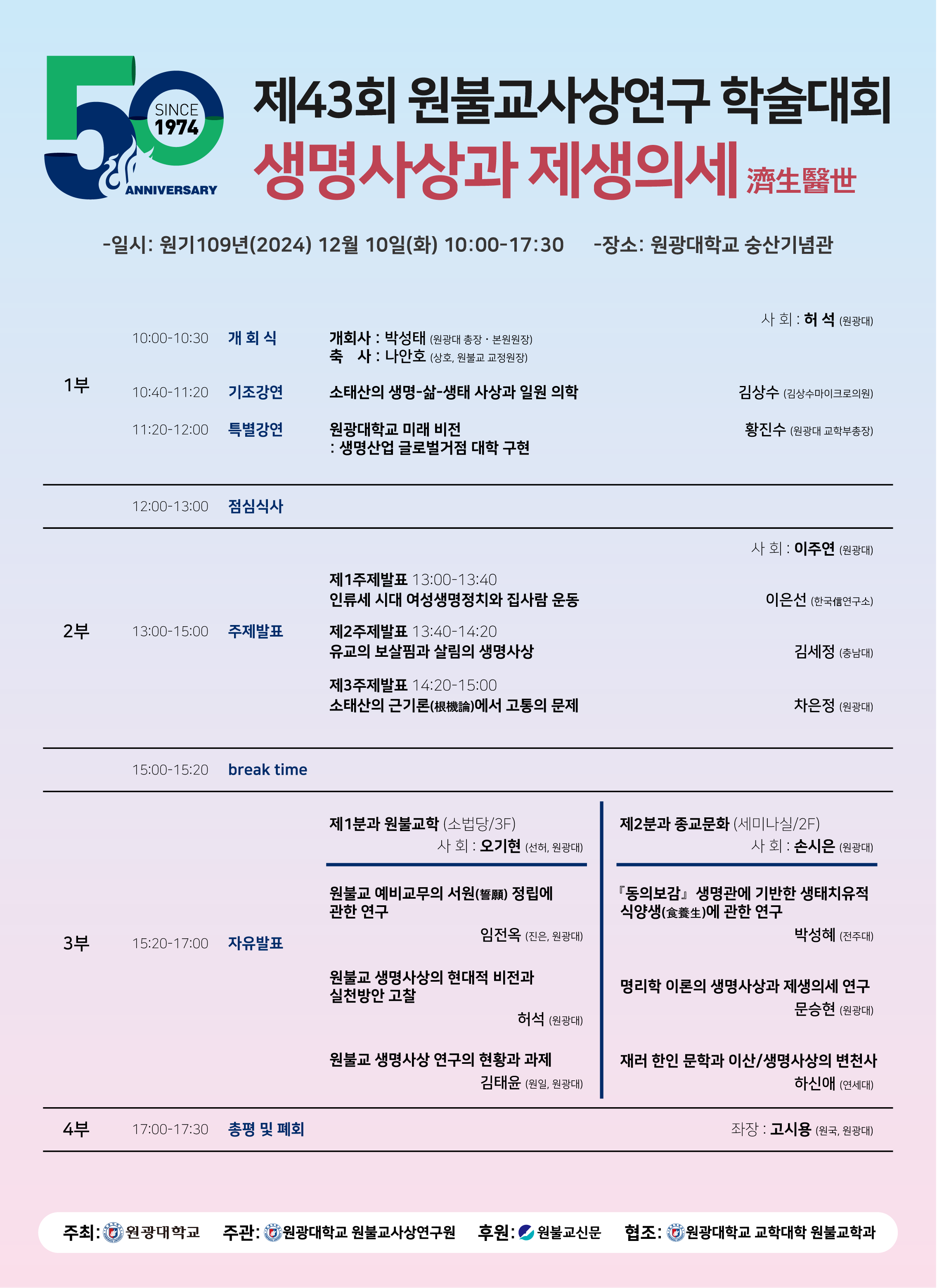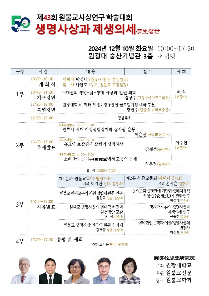 제43회 원불교사상연구 학술대회-생명사상과 제생의세