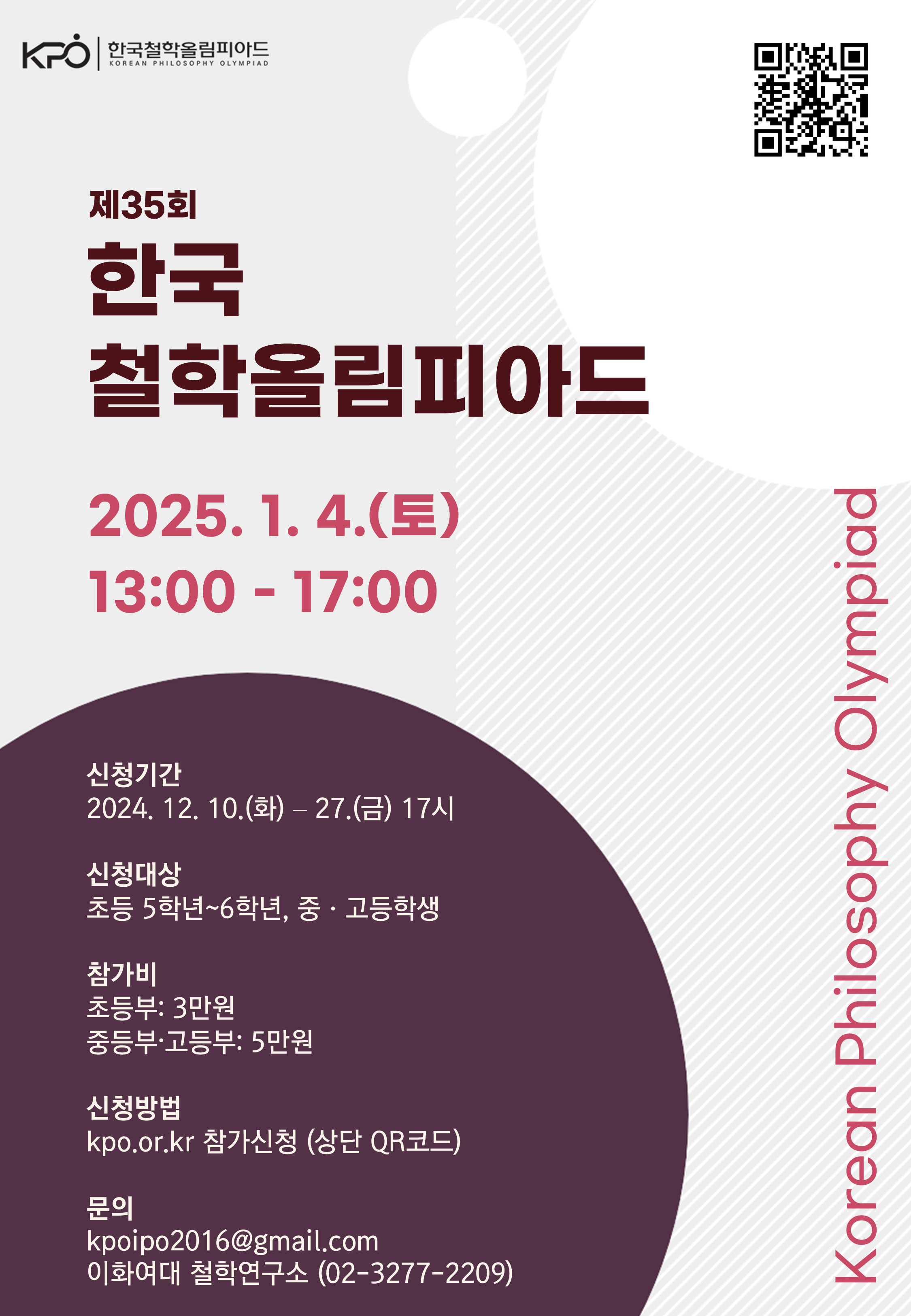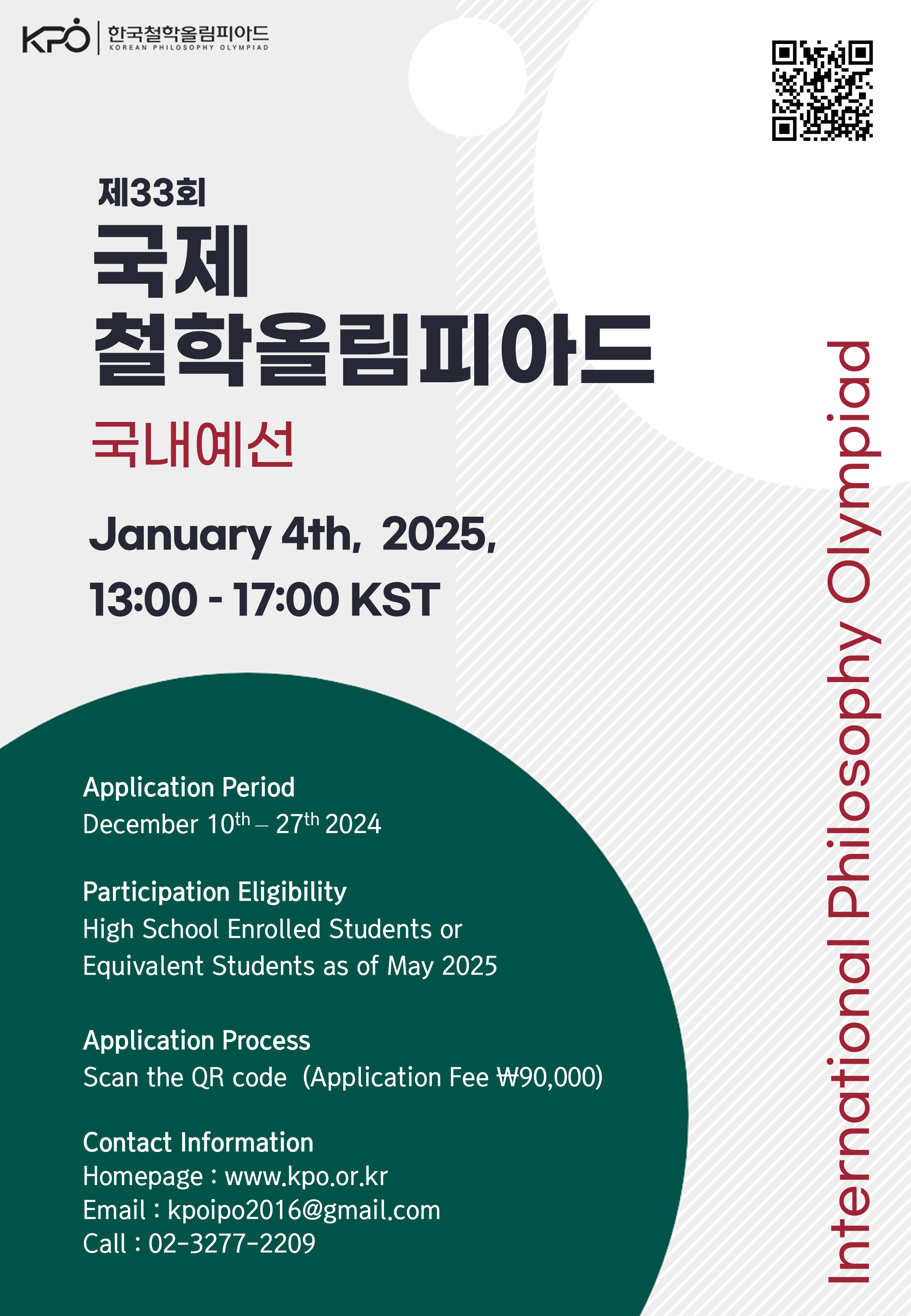 제35회 한국철학올림피아드(KPO), 제33회 국제철학올림피아드(IPO) 국내 예선 대회 안내