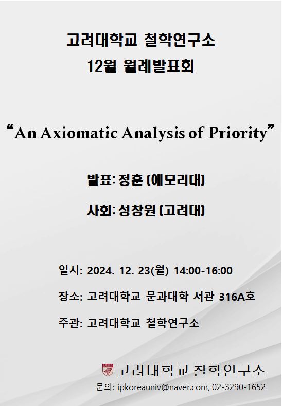 고려대학교 철학연구소의 12월 월례발표회 소식을 알려드립니다.