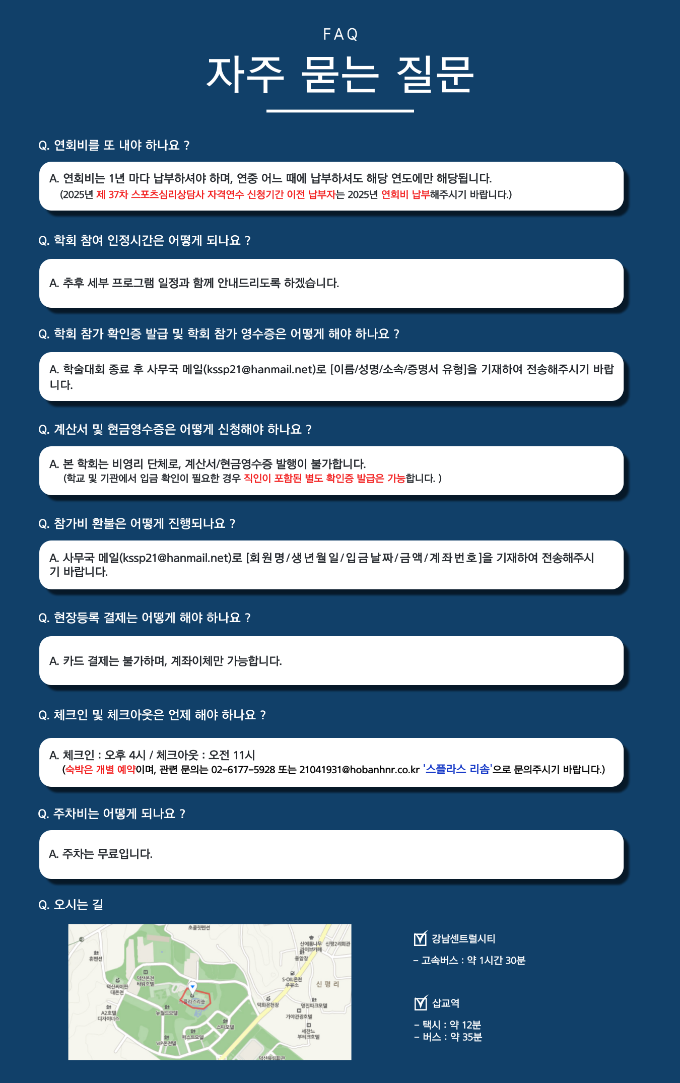 - 사전 등록비 입금 : 하나 748-910014-30104(사단법인 한국스포츠심리학회)