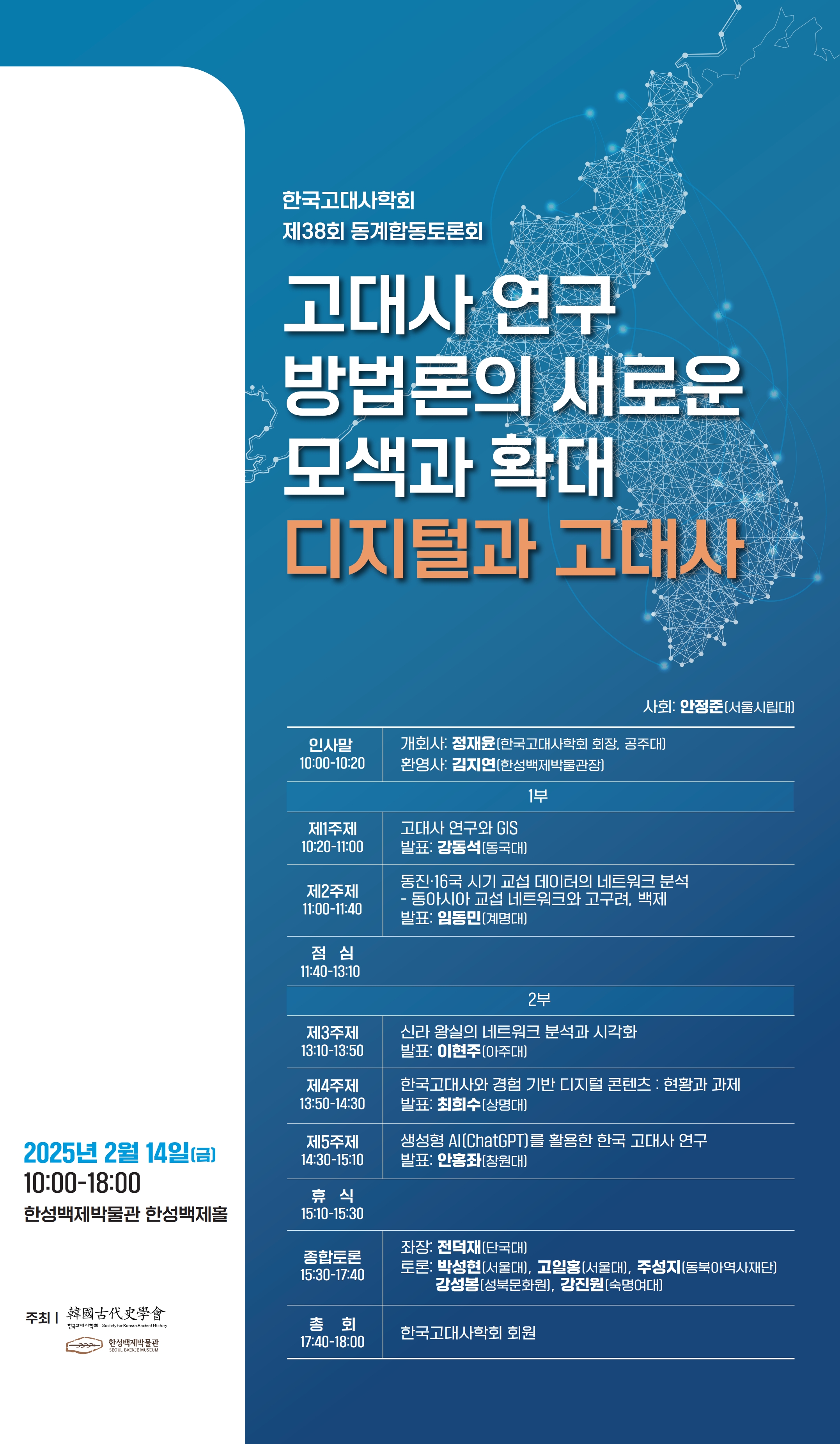 한국고대사학회 제38회 동계합동토론회 일정을 다음과 같이 공지합니다.