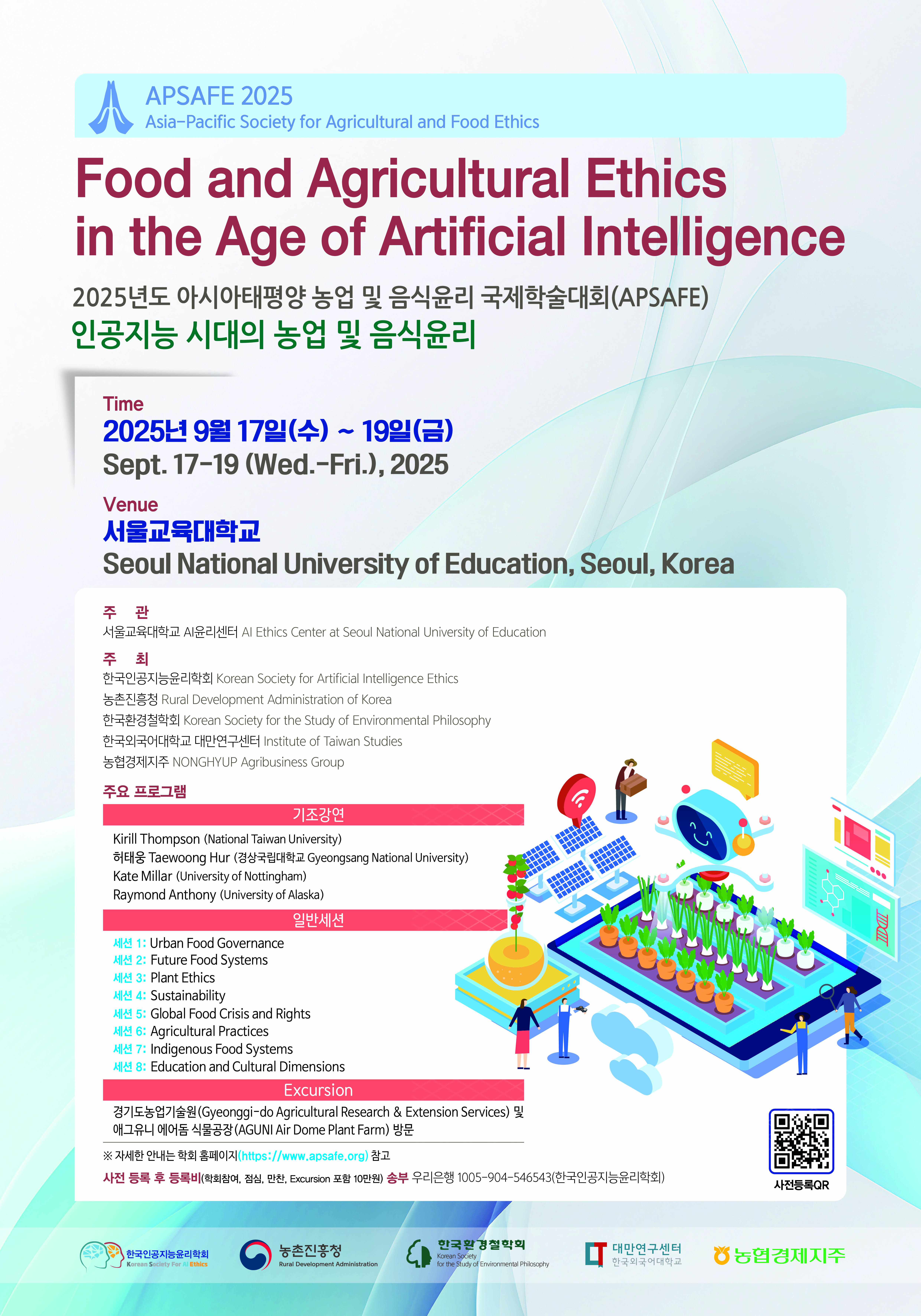 주제: Agricultural and Food Ethics in the Age of Artificial Intelligence (인공지능 시대의 농업 및 음식윤리)