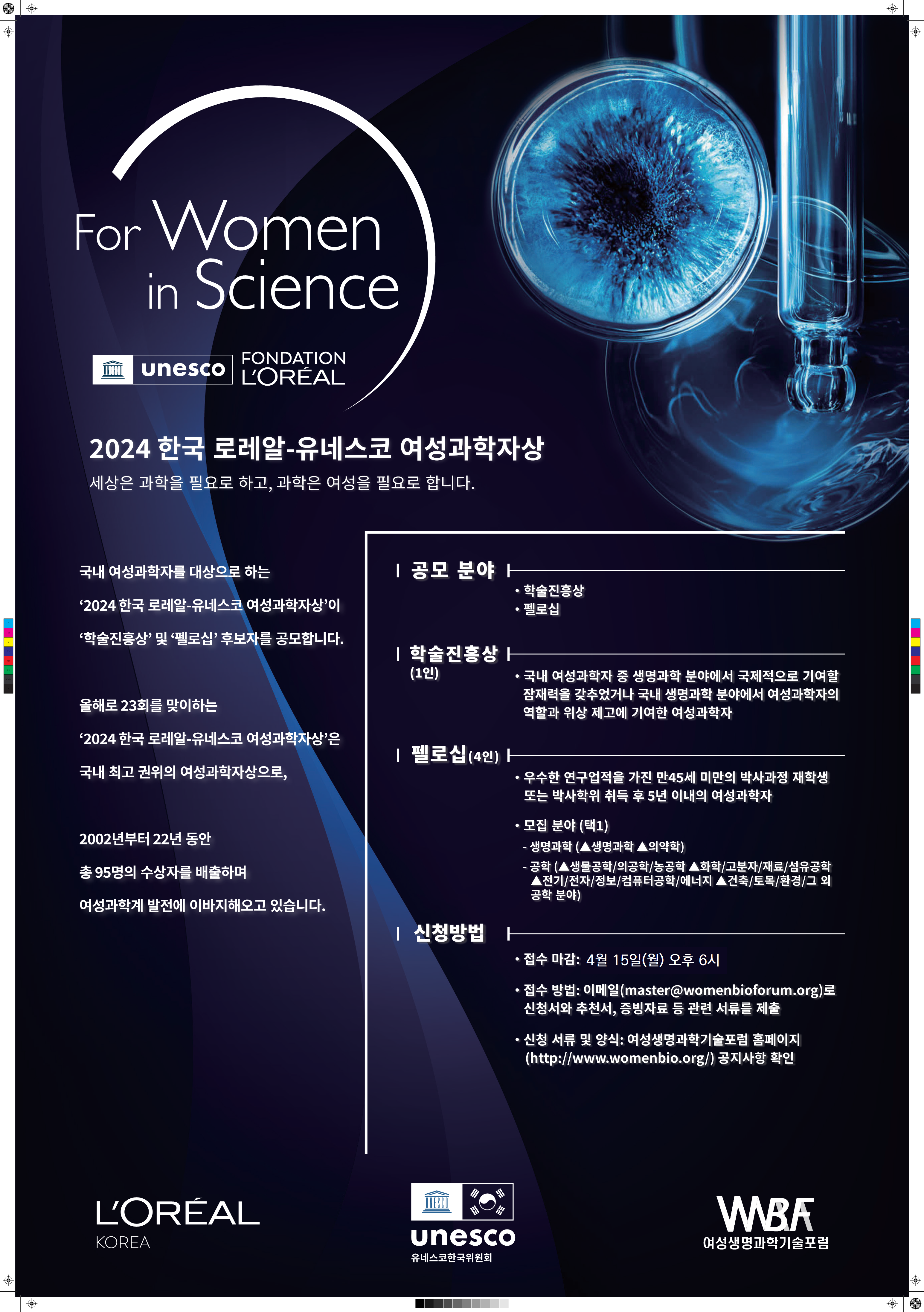 제23회 한국 로레알-유네스코 여성과학자상의 후보자 모집 기간이 아래와 같이 연장되어 알려드립니다.