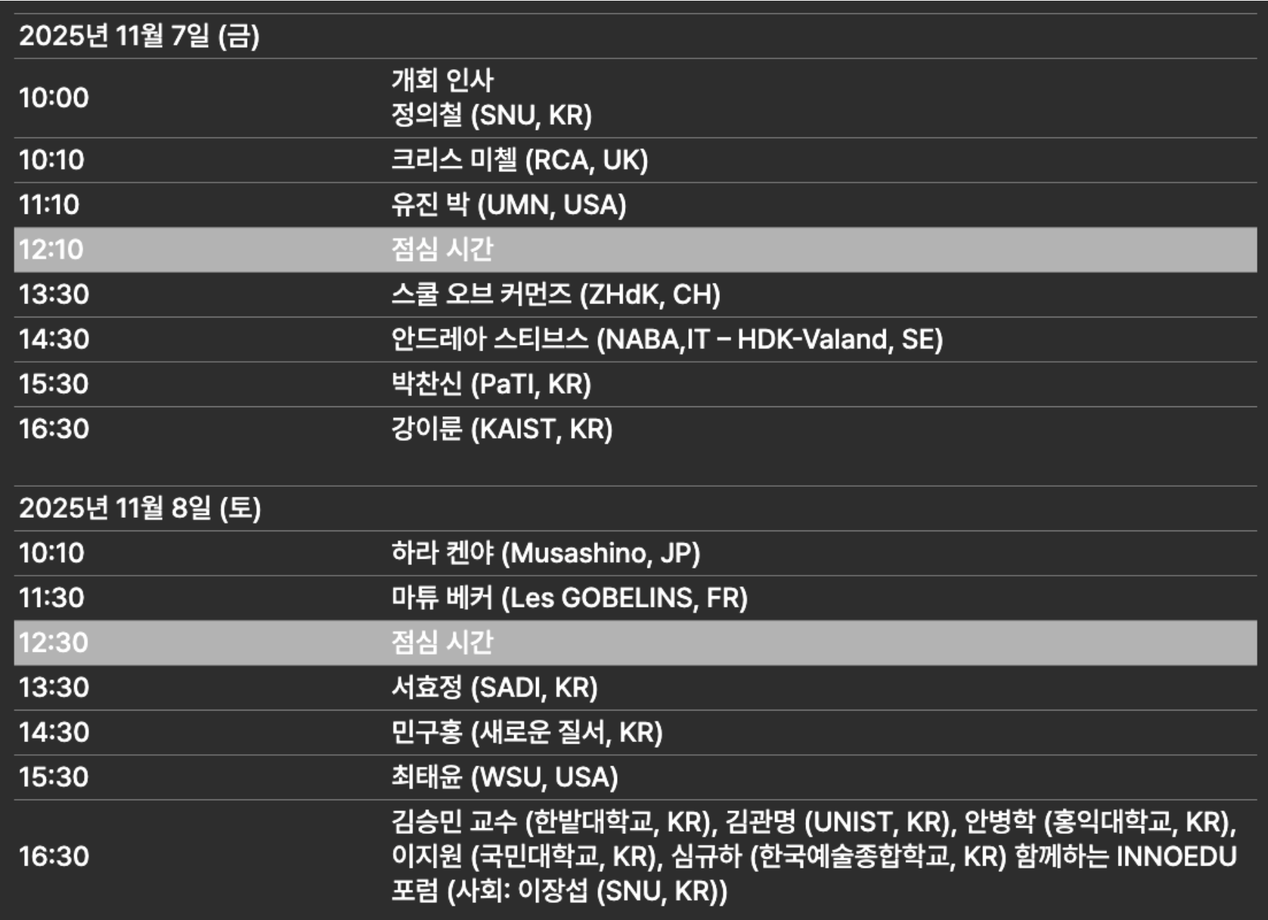 이러한 맥락에서 IDCC 2025는 디자인 교육이 어떻게 변화에 적응하고 혁신할 수 있는지 탐구합니다. 현재 디자인 산업과 연구의 현황에 대응하며, 글로벌 맥락에서 디자인 교육이 어떻게 변모할 수 있는지 전망하고 미래를 예측합니다.