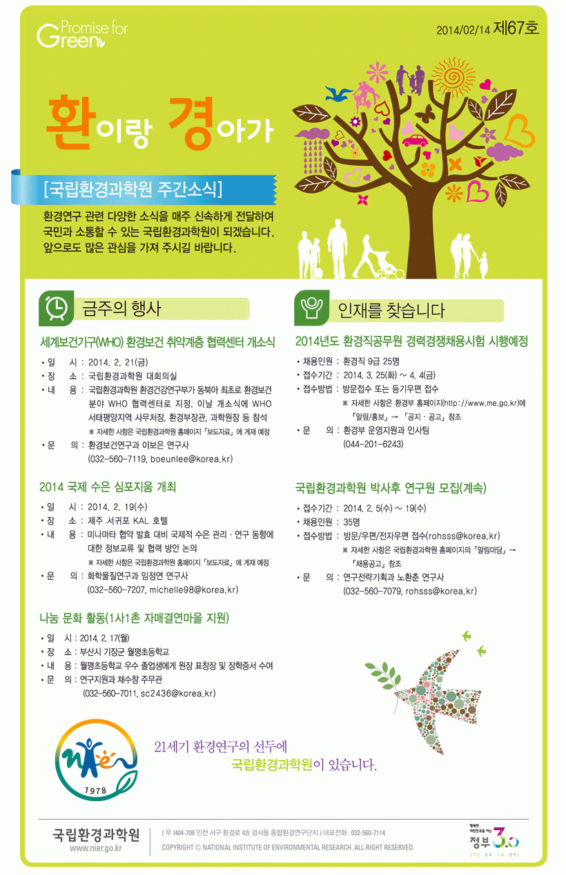 국립환경과학원 주간 소식 알림 - 2014년도 환경직 공무원 경력경쟁채용시험 시행예정 외