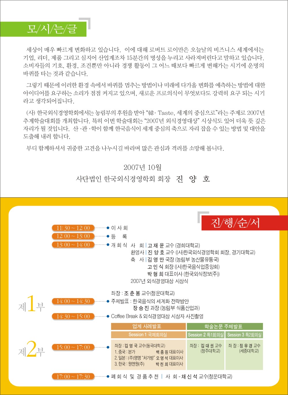 (사)한국외식경영학회에서는 2007년 추계학술대회를 다음과 같이 개최합니다.