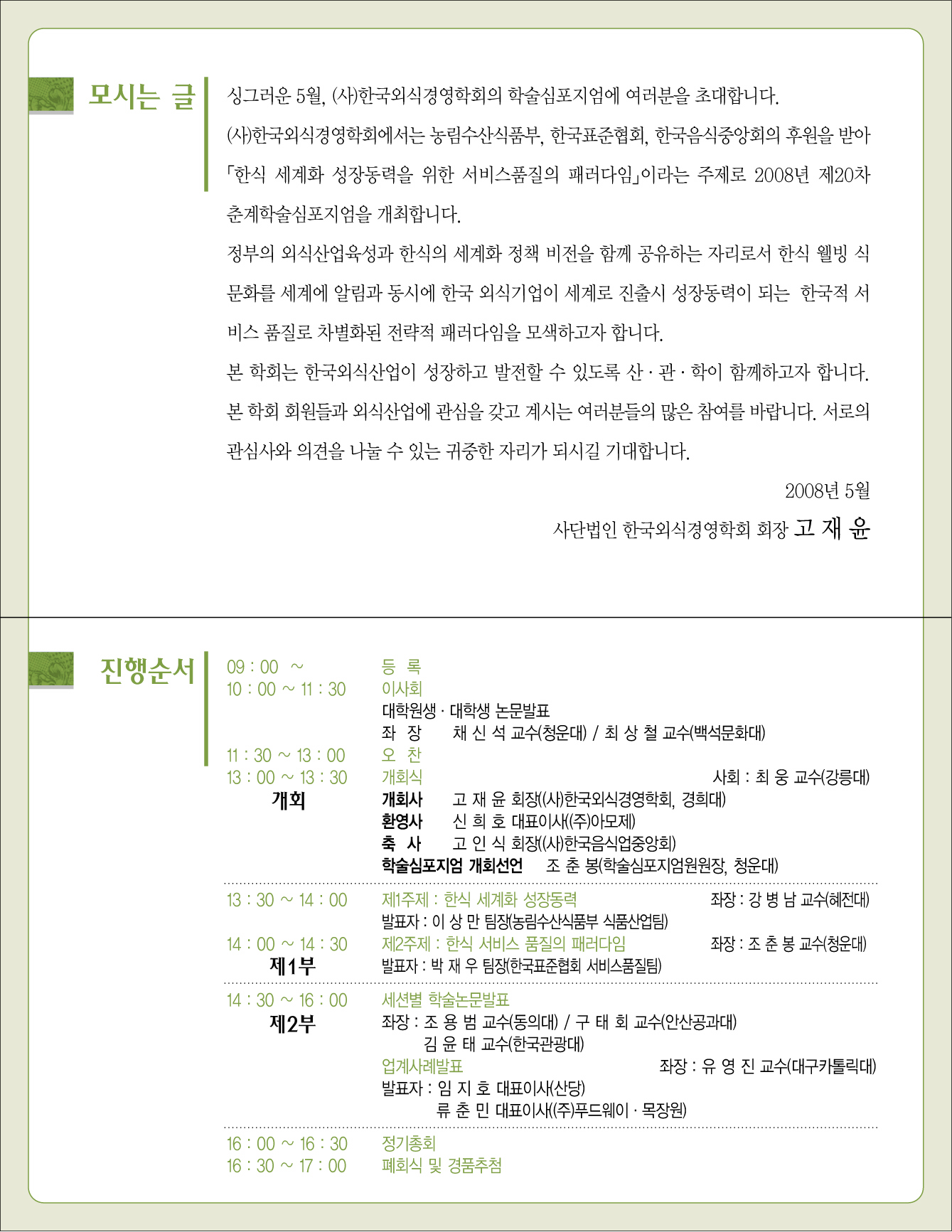 2008년 제20차 (사)한국외식경영학회 춘계학술심포지엄을 개최합니다.